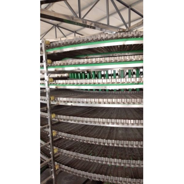 | cooling tower is applied as a cooling and transporting conveyor belt device for after baking food | bread |